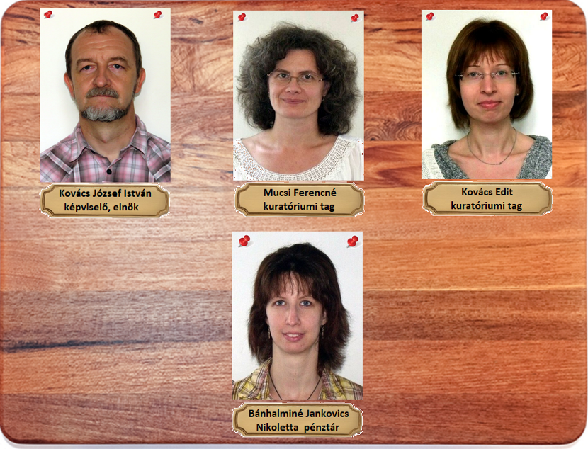 Az alapítványt 3 fős kuratórium irányítja, mely 2018. március 02-től működik a következő megbízással: Kovács József István intézményvezető /képviselő, kuratóriumi elnök/, Mucsi Ferencné intézményvezető-helyettes /kuratóriumi tag/, Kovács Edit gyógypedagógus /kuratóriumi tag/.